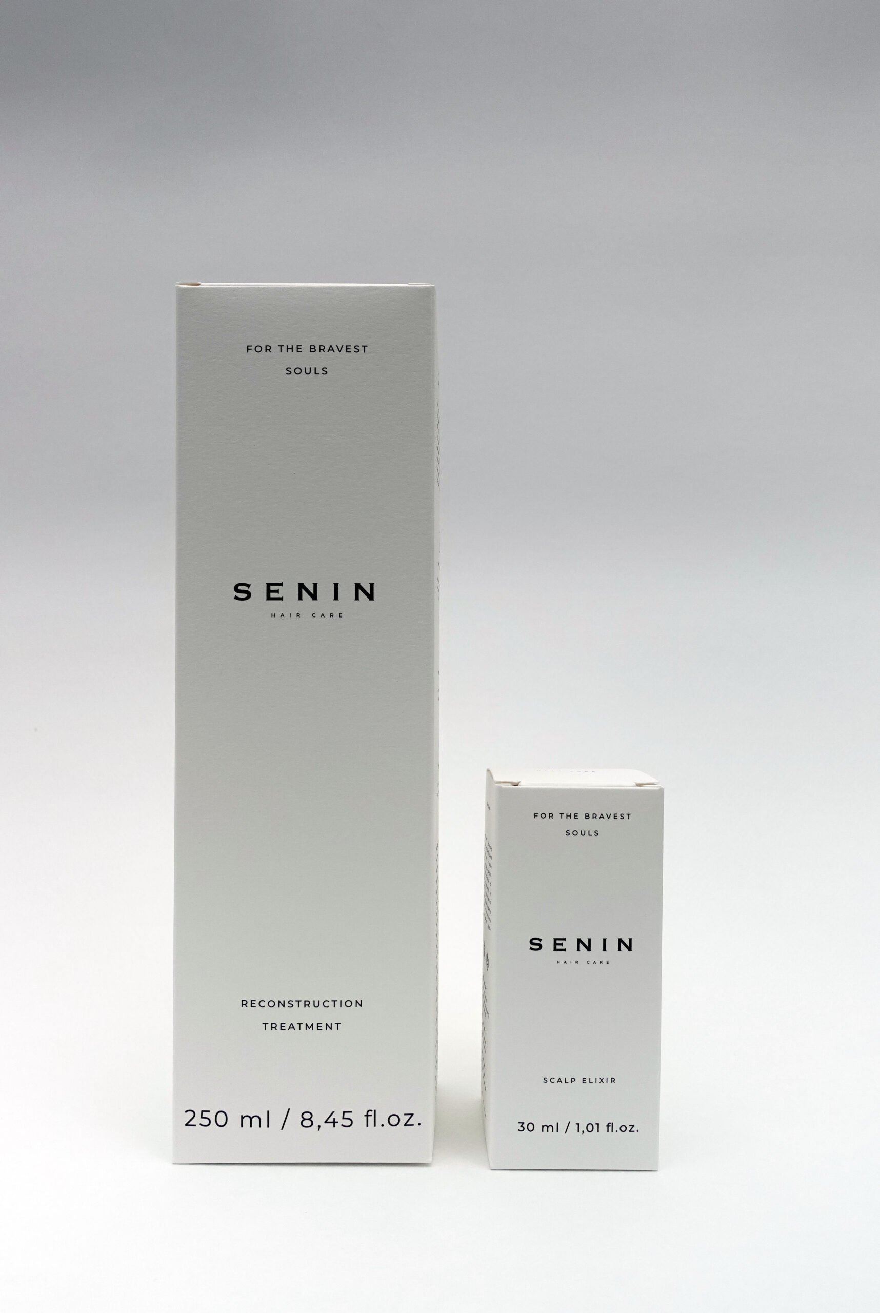 Produkty SENIN można stosować w duetach. Stosuj RECONSTRUCTION TREATMENT jednocześnie ze SCALP ELIXIR, aby cieszyć się pięknymi włosami i zaoszczędzić czas. Po wykonanej pielęgnacji nałóż jeszcze na końcówki olejek HAIR CARE OIL.