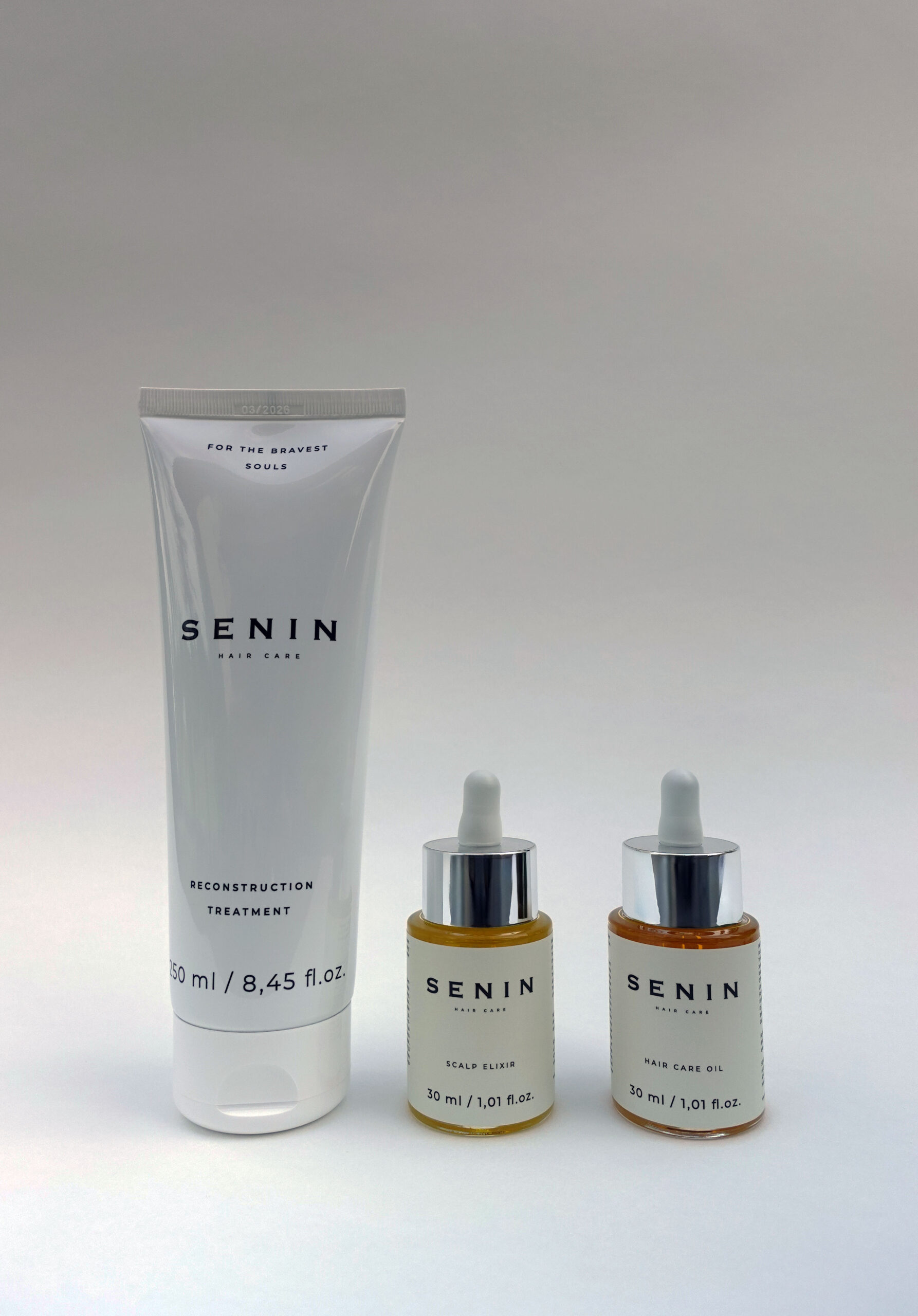 Produkty SENIN można stosować w duetach. Stosuj RECONSTRUCTION TREATMENT jednocześnie ze SCALP ELIXIR, aby cieszyć się pięknymi włosami i zaoszczędzić czas. Po wykonanej pielęgnacji nałóż jeszcze na końcówki olejek HAIR CARE OIL.